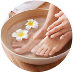 | フットケア | フットバス→ファイル→甘皮(ウォーターマニキュア)→ 保湿仕上げ |